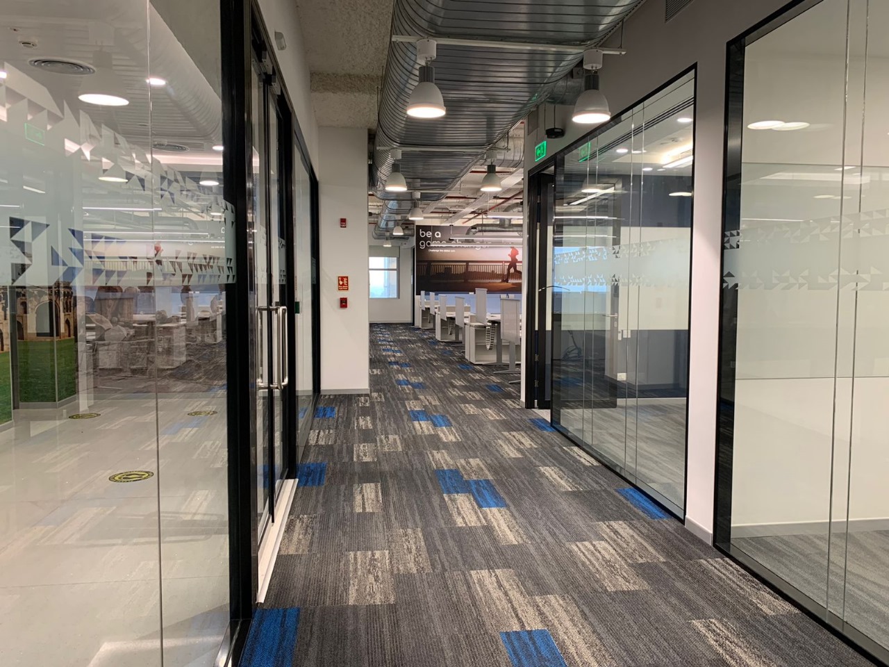 - Type: Built-to-suit office space with interiors shown as a model design